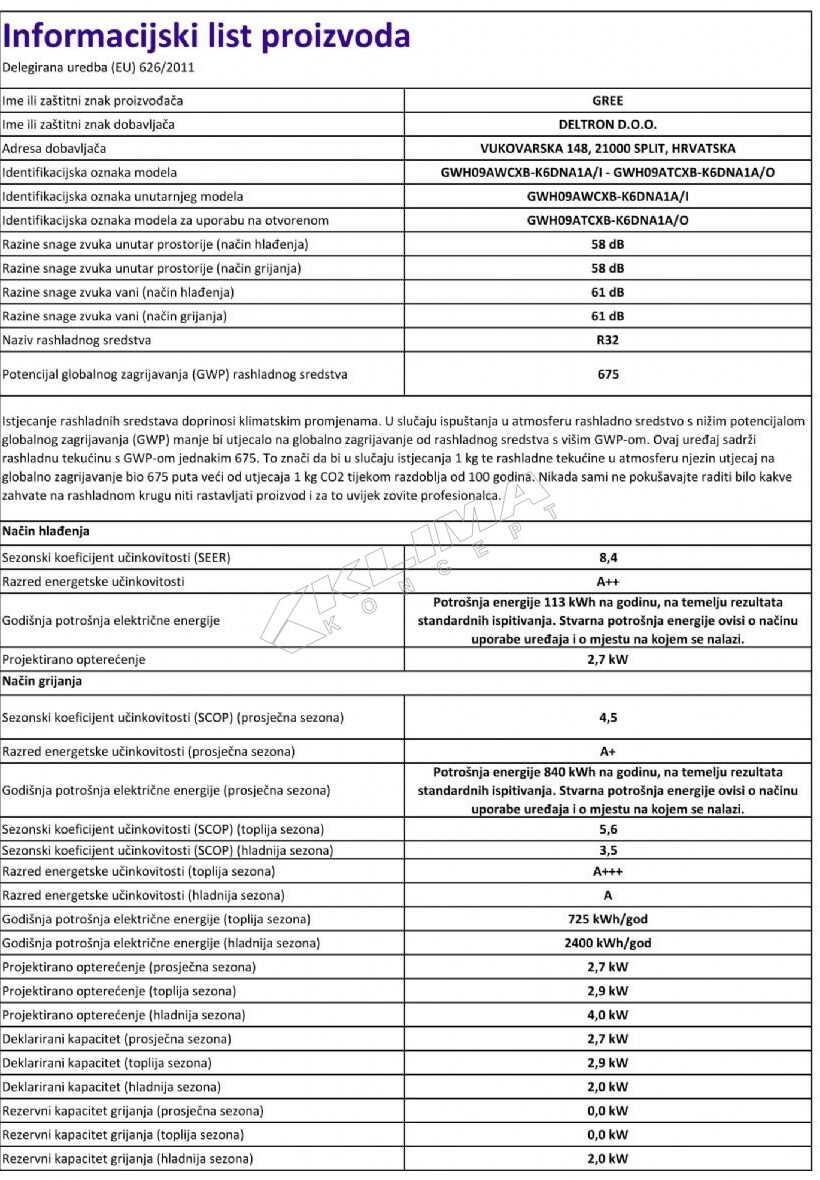 Maksimalno dozvoljena duljina instalacije između unutarnje i vanjske jedinice je 15 do 25m ovisno o snazi.